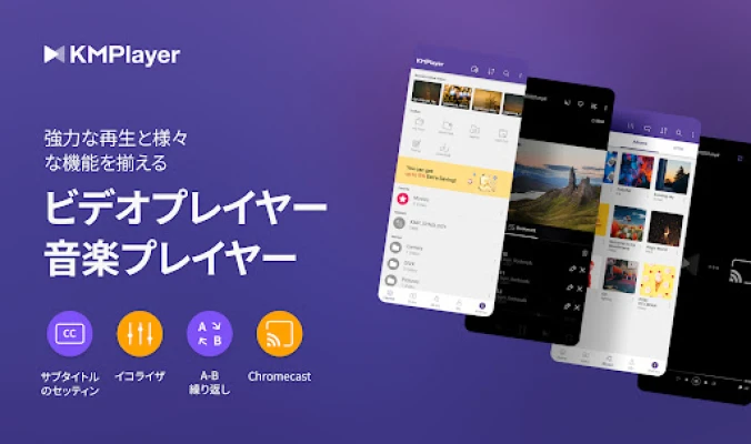 KMPlayerは、あらゆる動画と音楽をHDから8K UHDまで高画質で再生する究極のプレーヤーです。字幕設定、イコライザー、Chromecastなど多彩な機能を搭載し、美しいUIで最高の視聴体験を提供します。