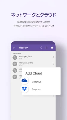 さらに、**KMPlayer**はメディアへのアクセスを無限に広げます。外部ストレージ(SDカード、USBメモリ)はもちろん、FTP、UPNP、SMB、WebDavといったプライベートサーバー経由、またはDropboxやOneDriveなどの主要クラウドサービスからも直接メディアを再生。Chromecastを利用して大画面テレビでの共有も簡単です。特別な体験を求める方には、**KMPlayer VIP**がお勧め。リアルタイムでのトレント再生、動画や音声のトリミング、GIF作成、MP3抽出、そしてあなただけのオリジナルテーマ作成など、プレミアムな機能が満載。KMPlayerは常に進化を続け、未来のエンターテイメントをあなたの手の中に届けます。