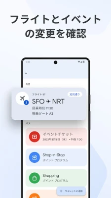 Google ウォレットで、電子マネーやカードの支払いをスマホで安全かつスピーディーに。搭乗券や映画のチケットも一元管理でき、必要なものがすべて手元に。日々の生活をスムーズにします。