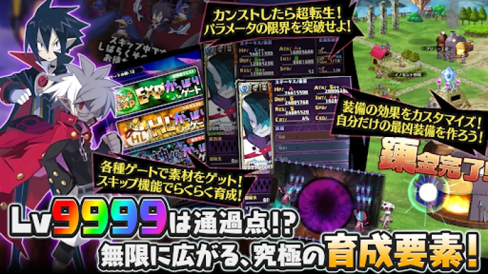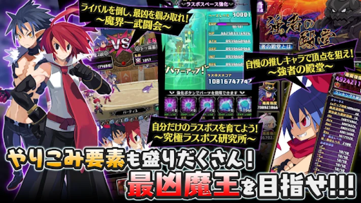 史上最凶のやり込み育成RPG「魔界戦記ディスガイアRPG ~最凶魔王決定戦!~」が登場。歴代主人公・ヒロインと共にオリジナルストーリーを進め、最大レベル9999、兆超えダメージの爽快バトルを体験。スマホで手軽に魔界の頂点を目指せ!