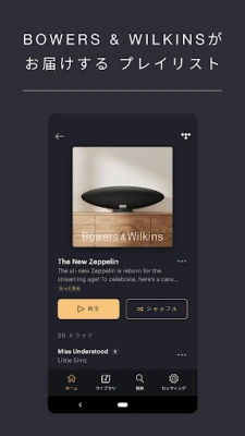 Bowers & Wilkins Musicアプリは、Bowers & Wilkinsが誇るオーディオ製品の真価を解き放ち、あなたの音楽体験をかつてないレベルへと高めます。この洗練されたプラットフォーム一つで、お気に入りの音楽ストリーミングサービス、ポッドキャスト、そして世界中のインターネットラジオ局をシームレスに探求できます。TIDAL、Qobuz、TuneIn、NTS Radio、Dash Radioなど、幅広いサービスに対応し、これからも新しい発見が定期的に加わるでしょう。パーソナライズされたおすすめや、Bowers & Wilkinsが厳選した特別なコンテンツを通じて、常に新しい音との出会いが待っています。