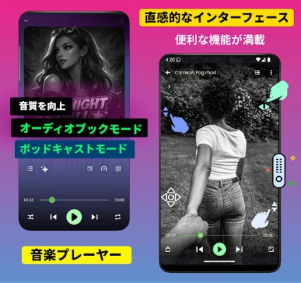 「Night Media Player」は、MKV、MP4、HEVC、VP9など、事実上すべてのビデオフォーマットとコーデックに対応し、HD、4K、8K、Ultra HDコンテンツをHW+アクセラレーションで快適に再生します。IPTVやM3Uプレイリストのストリーミング、多様なプロトコル対応、オンライン字幕検索、複数音声トラック切り替え、Android TVやChromecastへの出力もサポート。プライベートフォルダでのPIN保護、お気に入り、再生履歴、プレイリスト作成機能でメディア管理も万全です。広告や分析、不審な権限は一切なく、あなたのメディア体験とプライバシーは完全に保護されます。