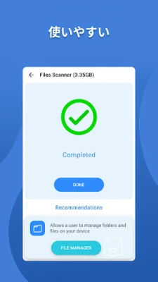 「Clean phone app」は、スマートフォンの動作を快適にするための優れた電話クリーナーです。不要なファイルを削除し、ストレージを最適化して、端末のパフォーマンスを向上させます。さらに、直感的なファイルマネージャー機能で、大切なデータを簡単に整理・管理できます。